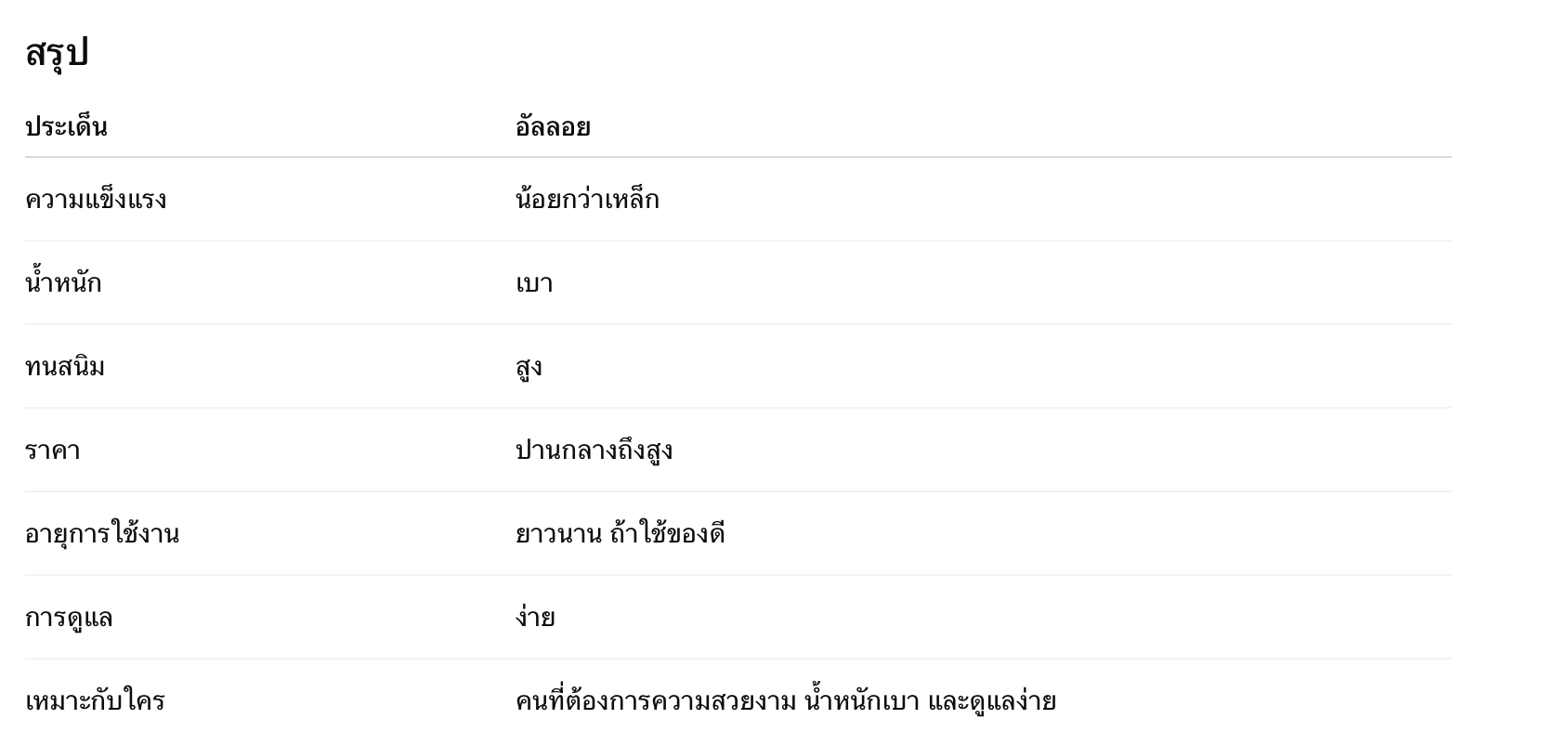 * โดยเฉพาะถ้าเป็นอัลลอยคุณภาพสูง ราคาจะใกล้เคียงหรือสูงกว่าเหล็กดัด