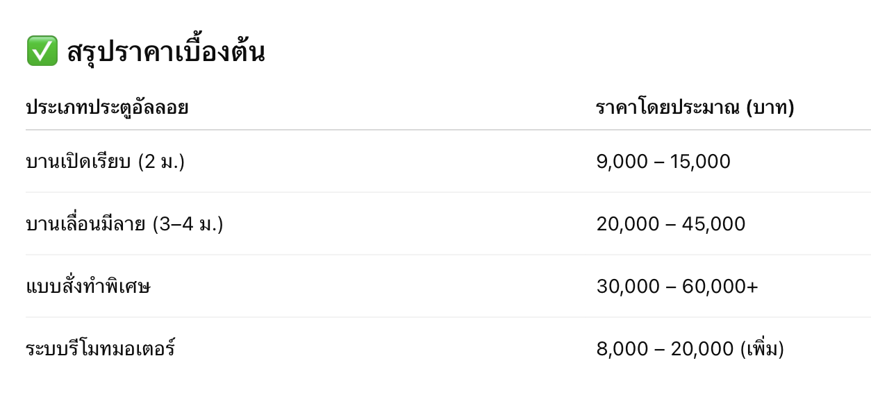 - ประสบการณ์: เลือกช่างที่มีประสบการณ์ในการซ่อมประตูอัลลอย